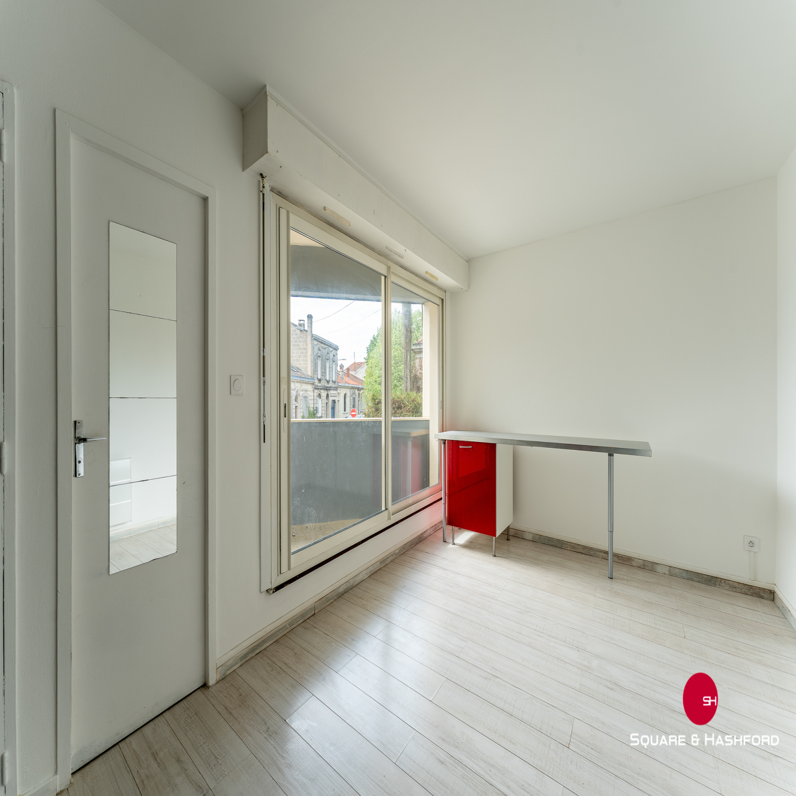 Exclusivité Square & Hashford, Au premier étage d’une résidence située à TALENCE, 42 rue François Coppée, lumineux studio de 22,50 m2 exposé sud et disposant d’un agréable balcon de 4,5m2 avec vue dégagée.