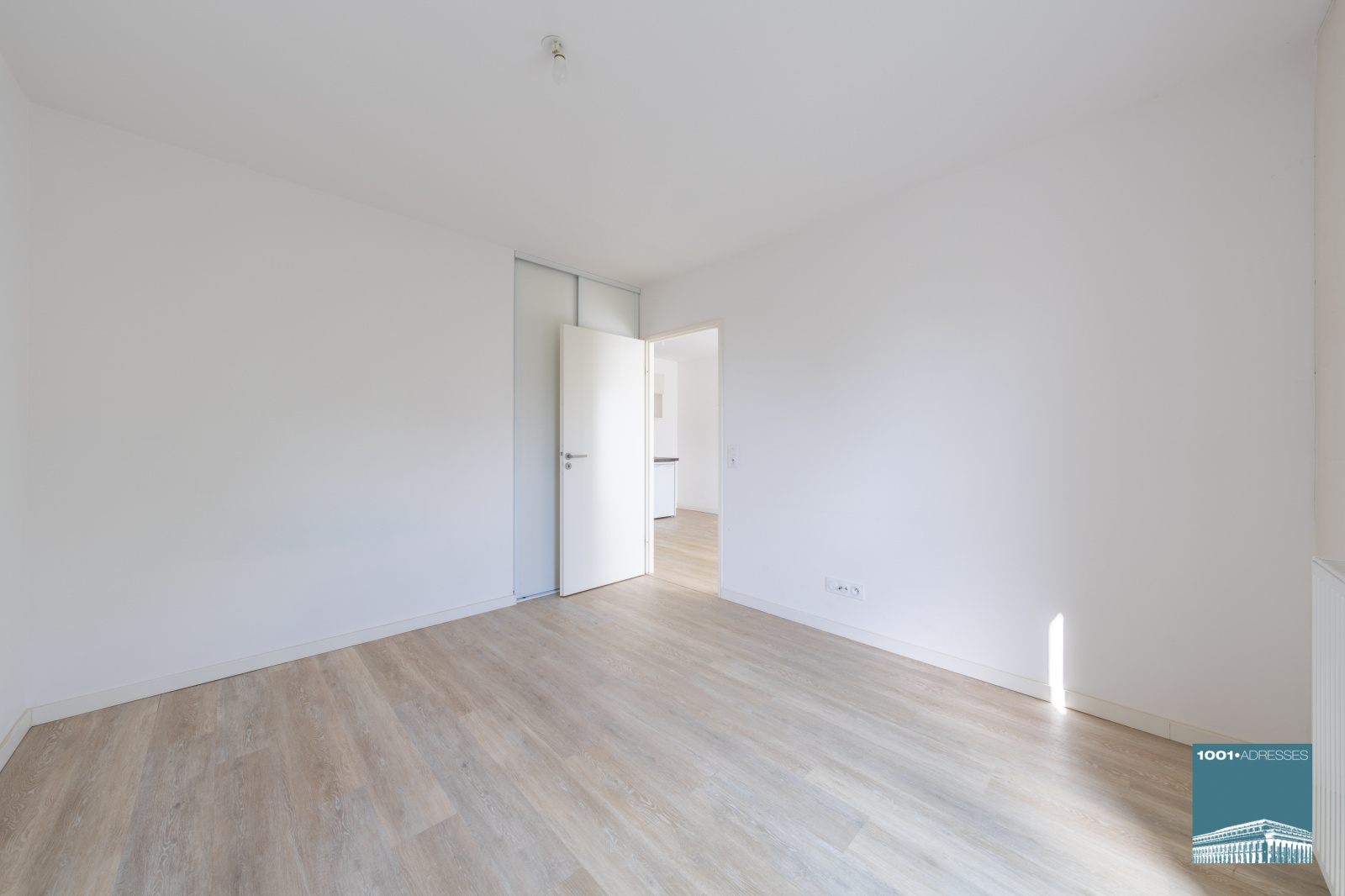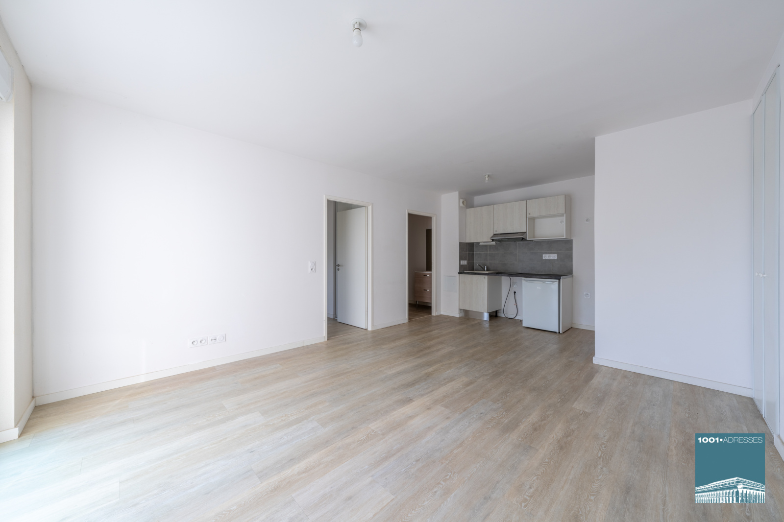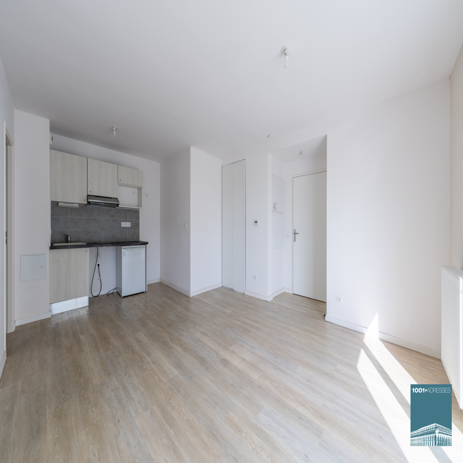 Vaste et lumineuse pièce à vivre de 23 m2 exposée sud avec cuisine semi-équipée donnant accès au balcon de 5,60, chambre avec placard, salle de bains avec WC.