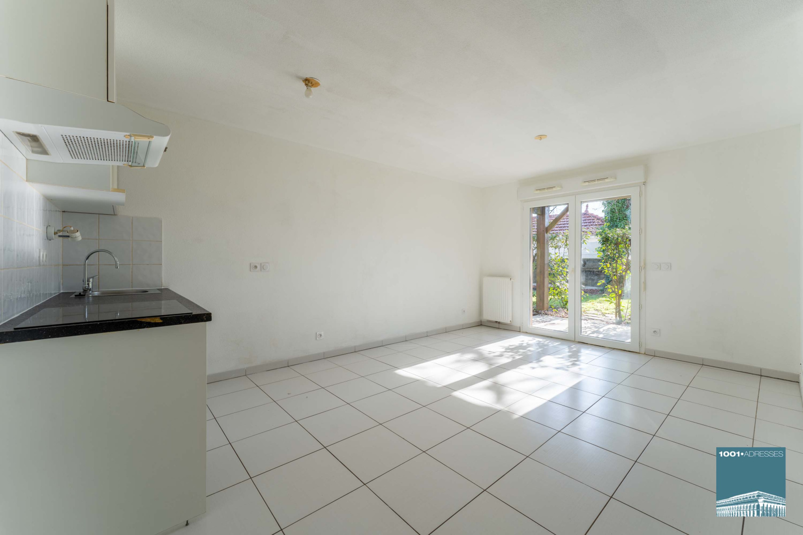 Cet appartement au calme comprend au rez-de-chaussée une entrée desservant une pièce à vivre avec cuisine ouverte sur séjour et accès à la terrasse, à l'étage deux chambres dont l'une avec placards, une salle de bains avec fenêtre.