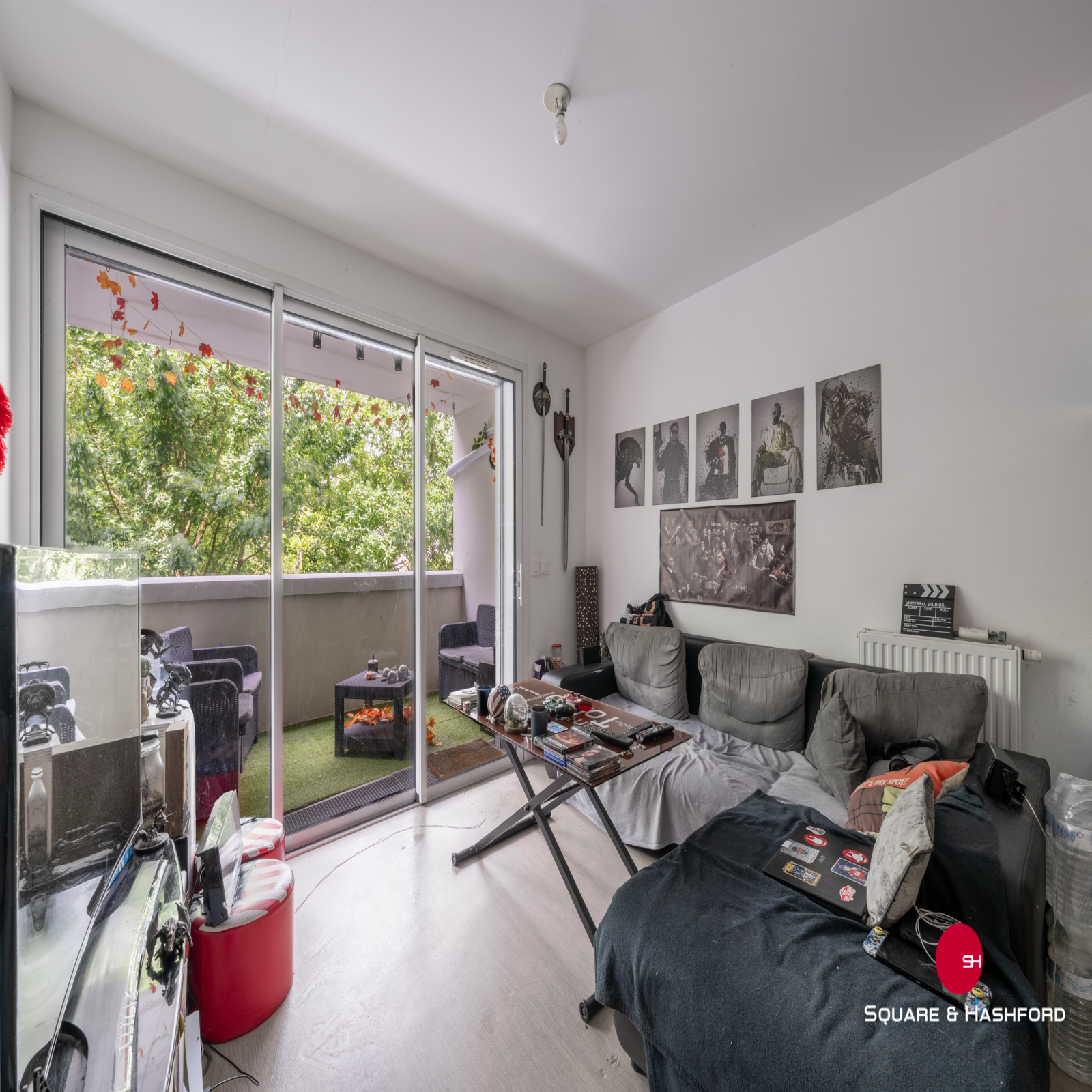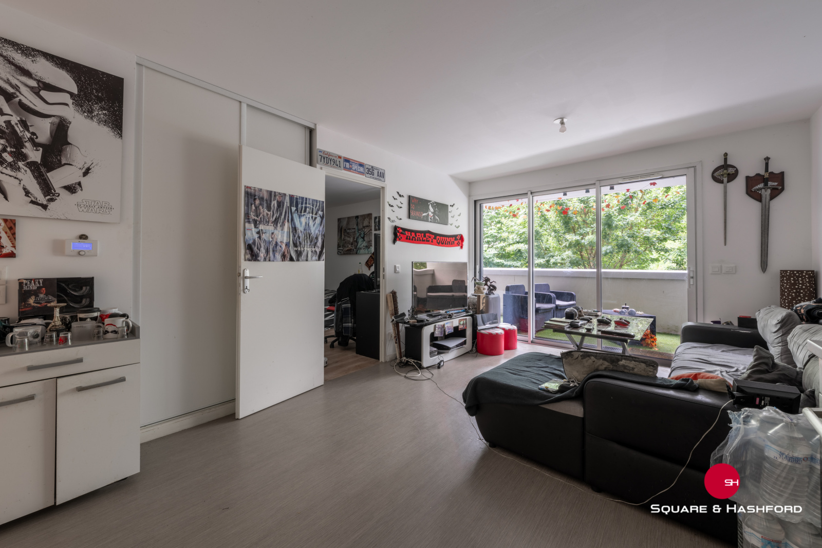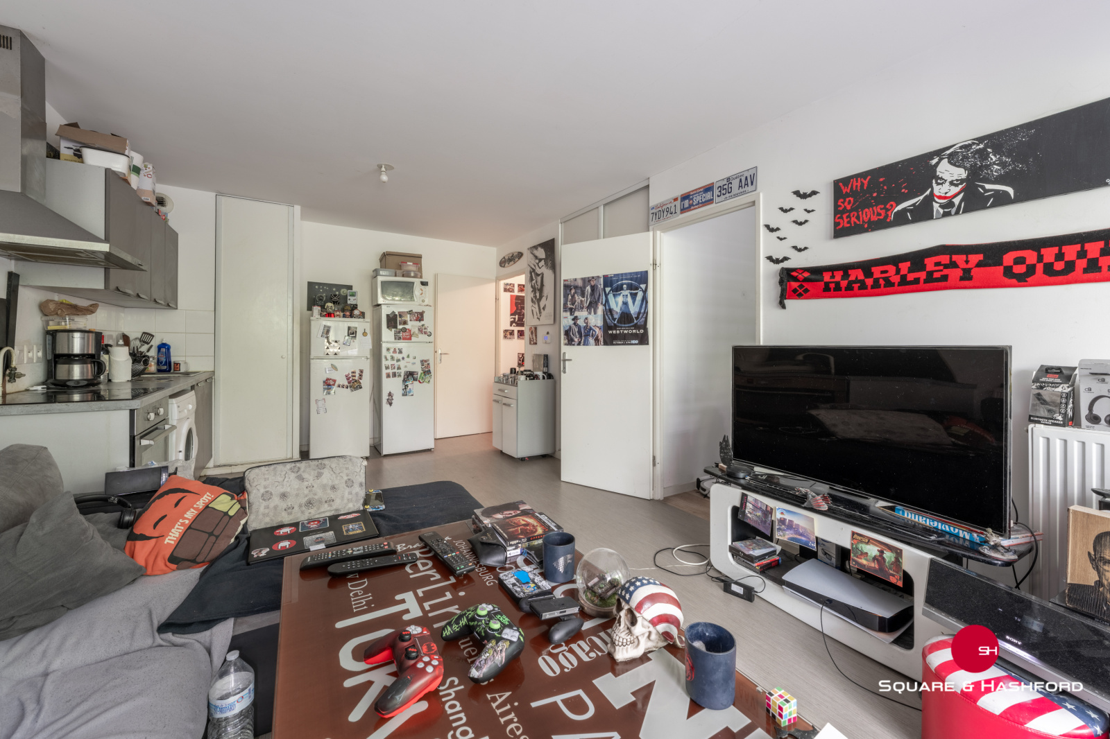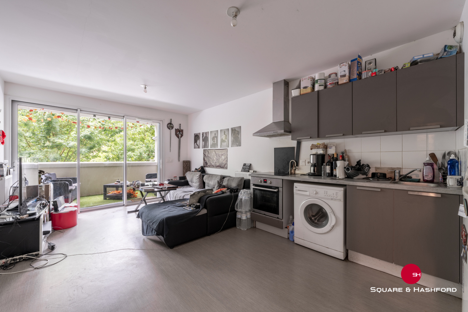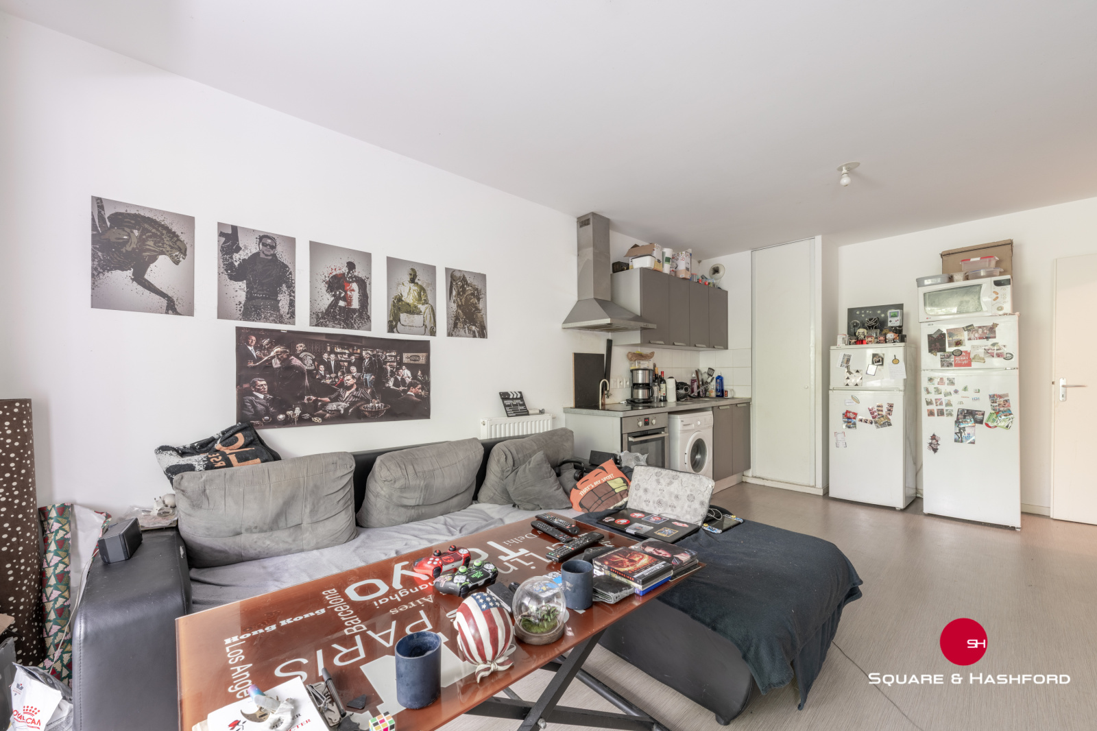 - une grande pièce de viie lumineuse de 21,5m2 avec cuisine équipée