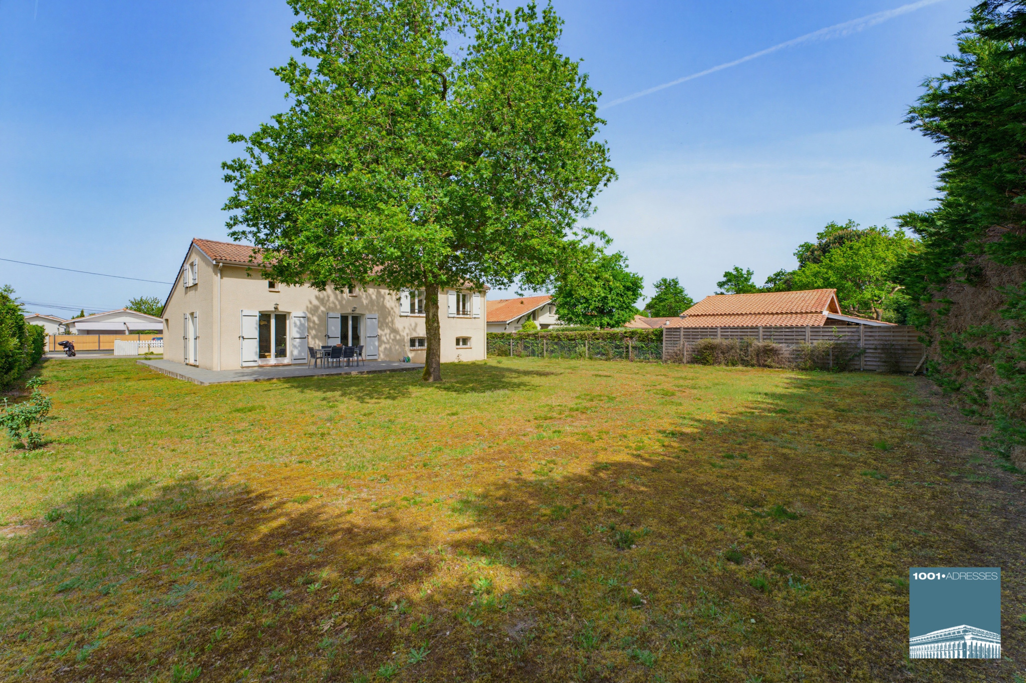 À l’extérieur, la maison est implantée sur une parcelle de 1 153 m² avec un jardin exposé plein sud à l’arrière, sans vis-à-vis, idéal pour profiter des beaux jours.